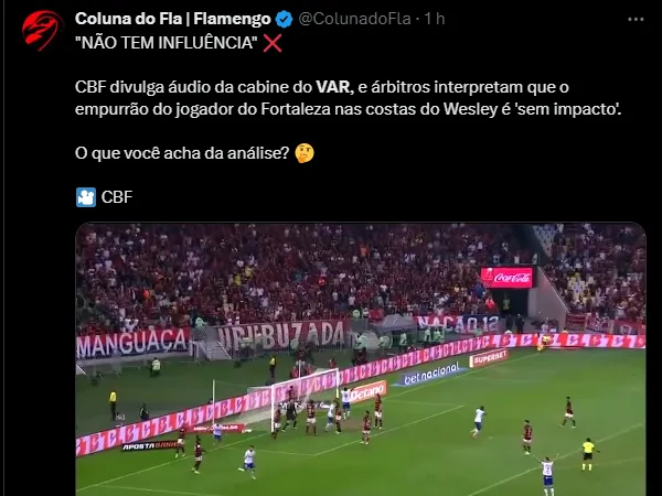 Existiram pelo menos três lances polêmicos no Flamengo x Fortaleza da última quinta-feira (11). Pênalti marcado em Pedro, gol de Gabigol impedido e falta que passou batido em Wesley.