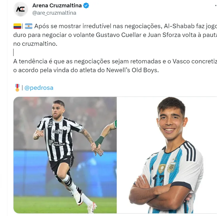 O Vasco da Gama encaminhou a contratação de um novo volante para a temporada do futebol brasileiro e, nas redes sociais, parte da torcida do clube da Colina é a favor da chegada do jogador.