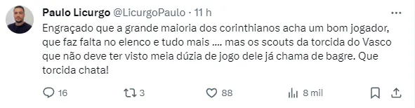 Para fechar com o ex-Corinthians, o Vasco deve desembolsar algo em torno de cinco milhões de euros. Na atual cotação, os valores correspondem a aproximadamente R$ 26 milhões.