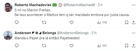 Enquanto isso, Marlon Freitas segue no Botafogo. Ele que, antes de chegar ao Nílton Santos, atuou por equipes como Atlético Goianiense, Criciúma e Fluminense.