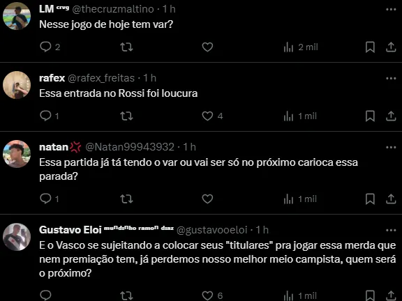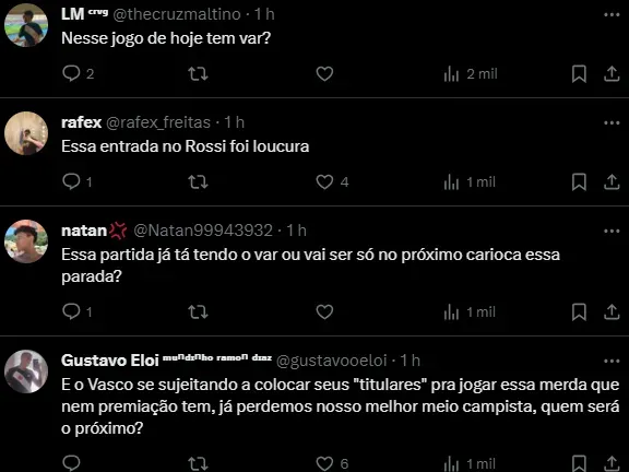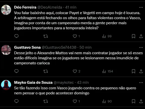 No mínimo, são quatro polêmicas em que os envolvidos e responsáveis pela falta de punição são os árbitros. Contra o Bangu, juiz afastado; VAR incluído após as reclamações do CRVG; e apenas Jair expulso.