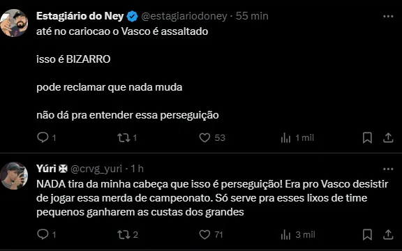 A torcida do Vasco lembra que é apenas a 5ª rodada do Campeonato Carioca. No entanto, muitos erros de arbitragem atrapalham diretamente o Gigante da Colina na competição.