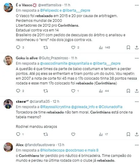 Velloso descartou a possibilidade de rebaixamento do timão após a vitória do Corinthians sobre o Athletico Paranaense, que levou o time alvinegro aos 40 pontos e à 11ª posição na tabela.