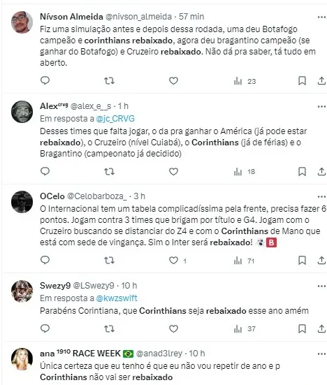 Você acredita que o Corinthians não corre mais risco de rebaixamento?