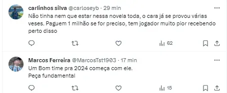 Vale lembrar que ele possui contrato até dezembro de 2024. Devido o vínculo, não existe uma preocupação sobre a saída no momento do volante, mas o último ano de contrato é visto como um período delicado pelo mercado, ainda segundo o portal. Seis meses antes do final do prazo, o atleta poderia assinar um pré-contrato com outra equipe.