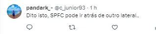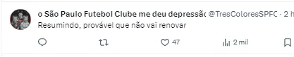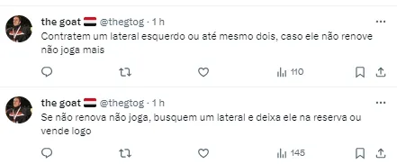 Com a fala do jogador, a torcida se manifestou nas redes sociais: “Procurem um lateral esquerdo urgente”, “Ou seja, não deve renovar”, “Deve estar apalavrado com outro time.”