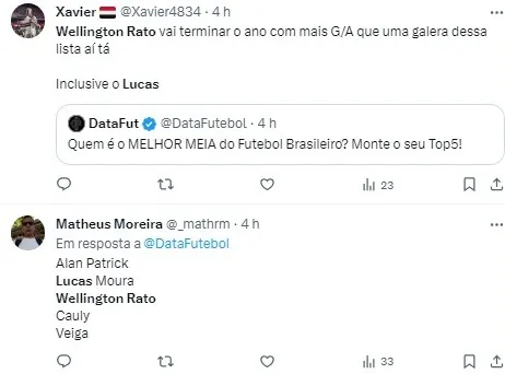 Sem hesitar, Rato indicou um colega de equipe como o melhor da atualidade: “Melhor meia do Brasil hoje? Lucas”, afirmou ele com convicção.
