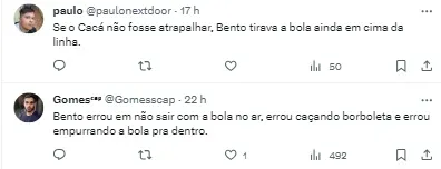 Segundo o treinador, a falha não foi somente do goleiro, mas de todo o sistema defensivo em geral no lance específico. Cacá acabou perdendo a posse de bola para Bidu, Thiago Heleno afastou mal e o goleiro também errou.