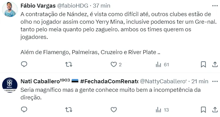 Essa não é a primeira vez que Nahitan Nández ganha força em Porto Alegre. No final de 2023 e no começo da temporada, o nome foi colocado em pauta, mas o lado financeiro pesou na balança.