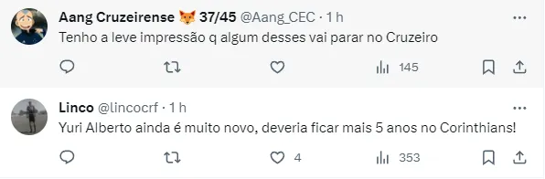 Yuri Alberto, por sua vez, foi alvo recente do West Ham United. O jogador, diferentemente de 2022, não faz uma grande temporada. São 15 gols em 60 jogos.