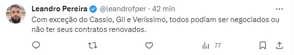 Desta forma, a tendência é de que diversos nomes deixem a equipe em dezembro. Flavio Souza destacou o fato, apontando, ainda, alguns destes. Yuri Alberto pode ser um.