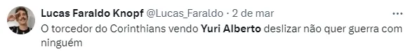 Enquanto isso, Yuri Alberto segue no futebol do Brasil e no Timão. Ele que, na carreira, além do Corinthians, soma passagens por equipes como Zenit, Internacional e Santos.