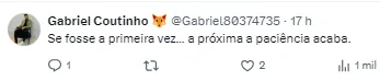 “Meu Deus, demorou para isso acontecer… Está errado e ainda quer sair bravinho. Ah, vá se lascar”, postou a esposa.