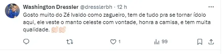 Zé Ivaldo, por sua vez, reconheceu o erro e usou as redes sociais para mandar um recado à torcida do Cruzeiro.