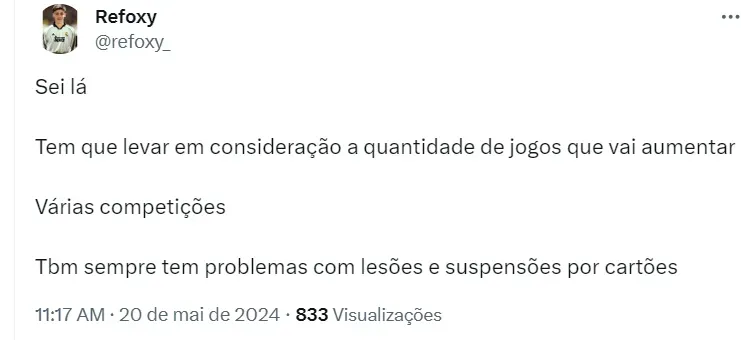 As renovações contratuais de Modric e Kroos também irão ajudar nessa possível falta de espaço na temporada 2024-25, pois Arda disputa posição diretamente com a dupla histórica.
