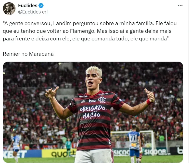 O Flamengo pode ser o destino de Reinier. O clube carioca está atento a situação do brasileiro e interessado na contratação. Inclusive, recentemente, o jovem esteve no Rio e conversou com os cariocas.