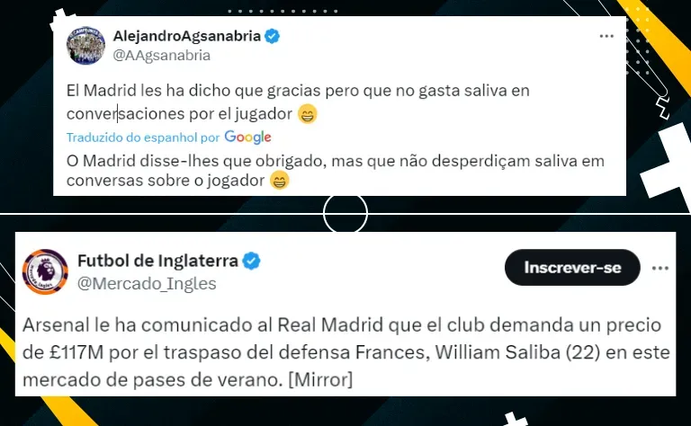 O possível acordo, segundo noticiado pelo portal Defensa Central, seria Rodrygo por Saliba. Anteriormente, o Arsenal havia pedido mais de 100 milhões de libras pelo defensor, preço distante do Real Madrid.