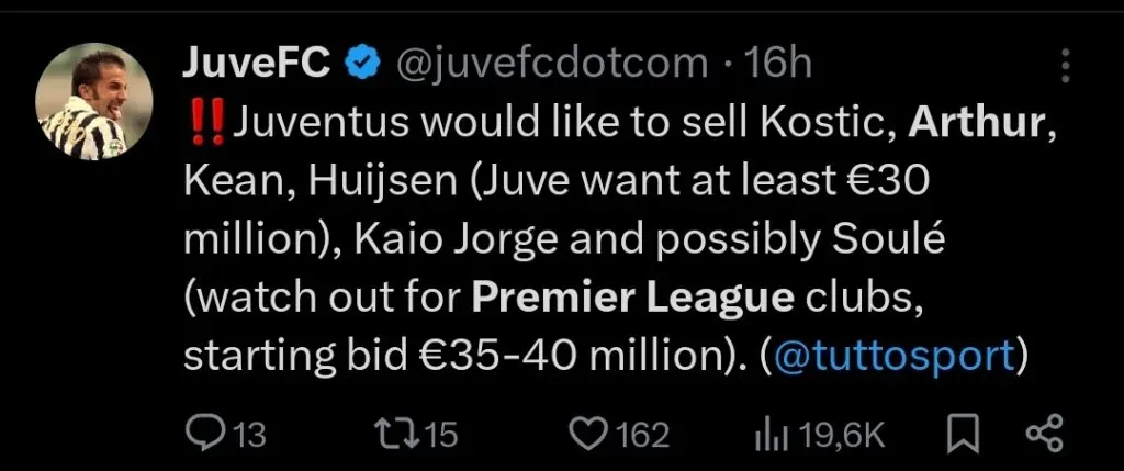 Inclusive, de acordo com o jornal Diário AS, da Espanha, a Juventus não descarta vender o meia na próxima janela. Entretanto, a tendência é que a diretoria aguarde uma posição por parte de Thiago Motta, novo treinador do clube.