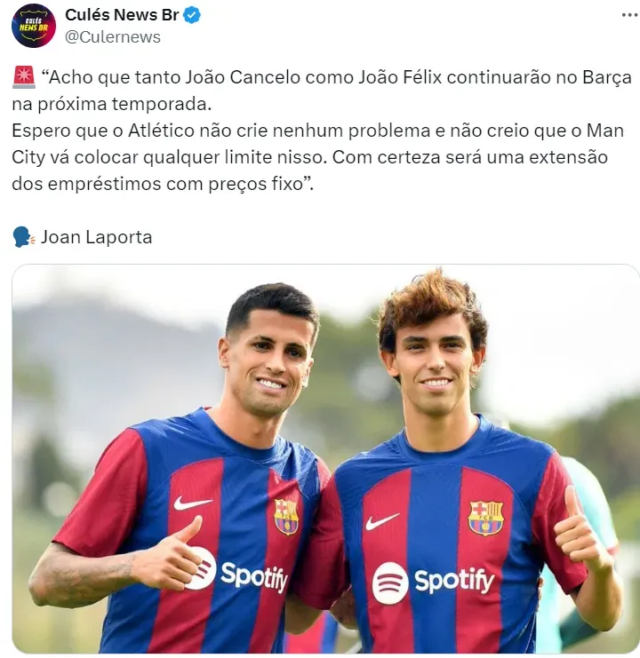 João Félix está emprestado ao Barcelona até o final da temporada. Ele pertence ao Atlético Madrid, mas deseja ficar em Catalunha. O Barça também deseja permanecer com o jogador.