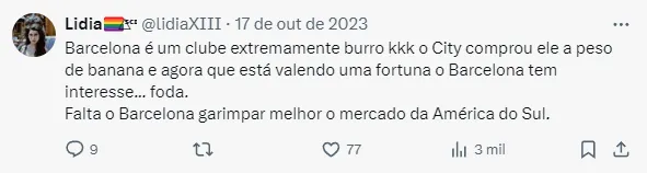 De acordo com o portal Fichajes, o Barcelona tem interesse em assinar com um dos principais jogadores do Manchester City de Pep Guardiola. O atleta, inclusive, não descarta a mudança.