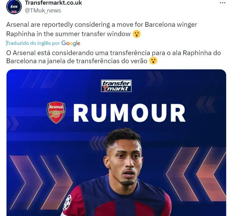 De acordo com informações do portal fichajes.net, o brasileiro Raphinha está na lista de saída do Barcelona e pode deixar o clube da Catalunha no final da temporada, que se encerra em junho.