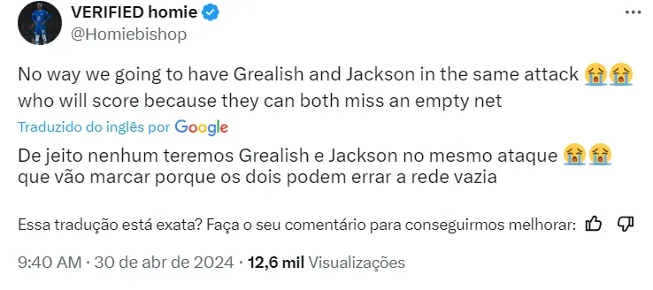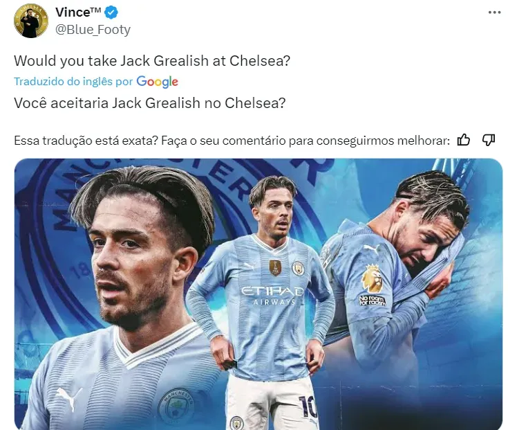 Grealish é a maior contratação de toda a história do Man City em termos de dinheiro. Há duas temporadas, o time de Manchester desembolsou cerca de 100 milhões de libras ao Aston Villa pelo camisa 10 inglês.