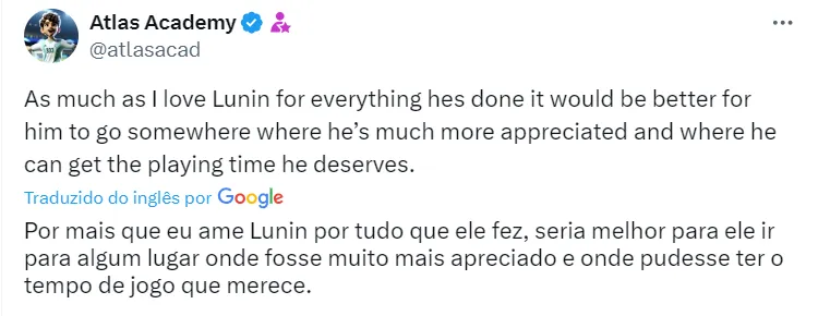 O United pode ser essa oportunidade para Lunin, apesar de que ele teria que disputar posição com Onana, contratado a peso de ouro e que, na temporada, não teve seus melhores momentos. Na Europa, há outros clubes interessados no futebol do ucraniano, que tem contrato com o Real até o final da próxima temporada.