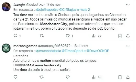 O ídolo do Corinthians destacou o Manchester City, que conquistou o Treble (Tríplice Coroa) na última temporada e tem se mostrado dominante na Premier League nos últimos anos, considerada por muitos como a principal liga de futebol do planeta.