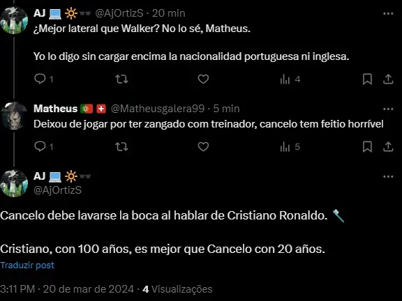 O lateral vai além: “É um jogador importante para nós. Mas, a Seleção Portuguesa não depende apenas dele”, completou Cancelo sobre o que pensa do momento de Cristiano Ronaldo.