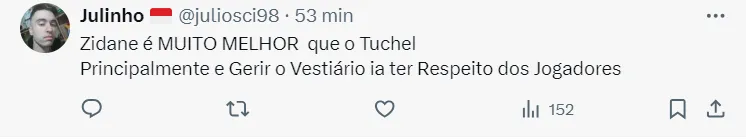 Ídolo do Real Madrid, Zidane está livre no mercado desde o ano de 2021, quando deixou o clube merengue em sua segunda passagem, que durou 89 jogos no total e dois títulos ganhos.