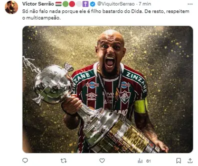 “Mbappé é um bobo. Para mim é um bobo. São três gols na final, a Argentina saiu campeão (da Copa do Mundo) e Messi saiu melhor do mundo. Tem muito o que aprender”, disse o jogador do Fluminense.