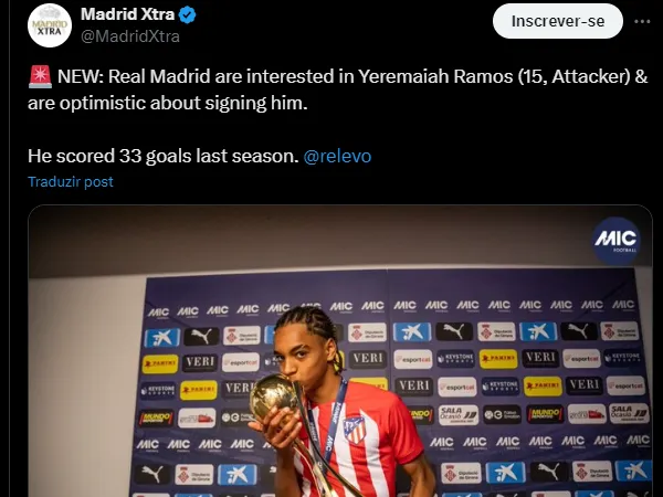 Torcedores merengues estão elogiando o movimento de mercado antecipado pelo Real Madrid para contratar o atleta. Ele pertence ao Atlético de Madrid, adversário do Real na capital da Espanha.
