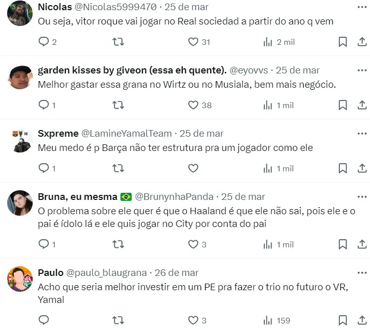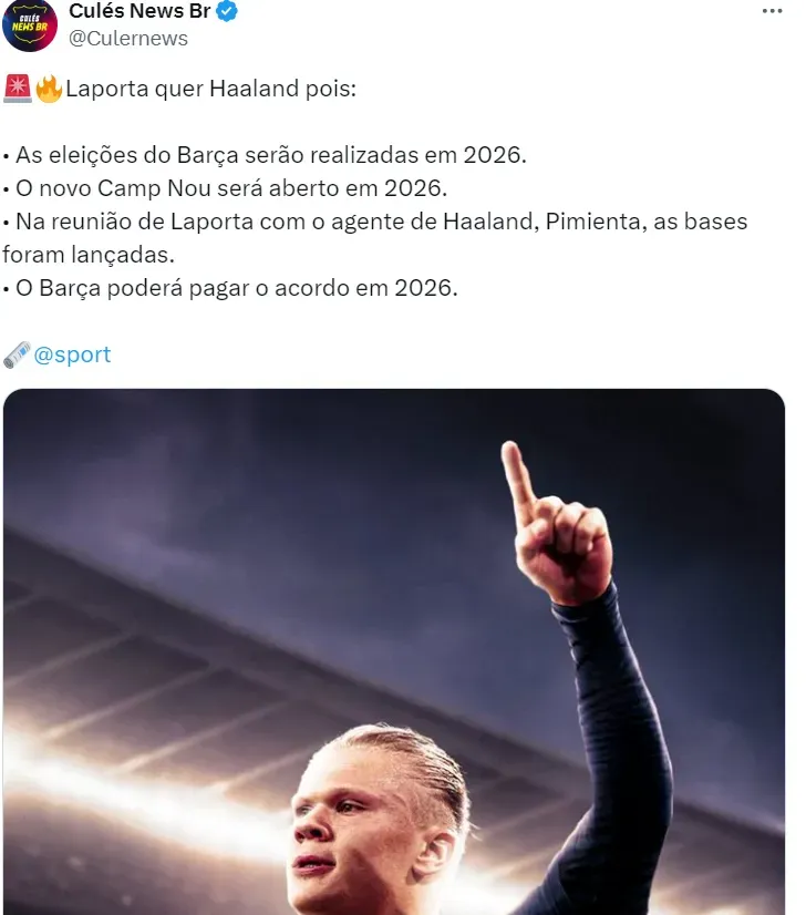 No mercado, o nome do atacante do City é ligado a outros clubes europeus, como o Barcelona, de Laporta, que deseja tê-lo no elenco no futuro com planos traçados para convencê-lo a jogar na Espanha.