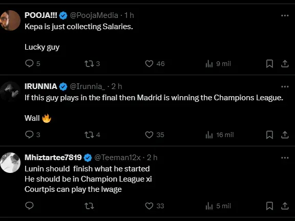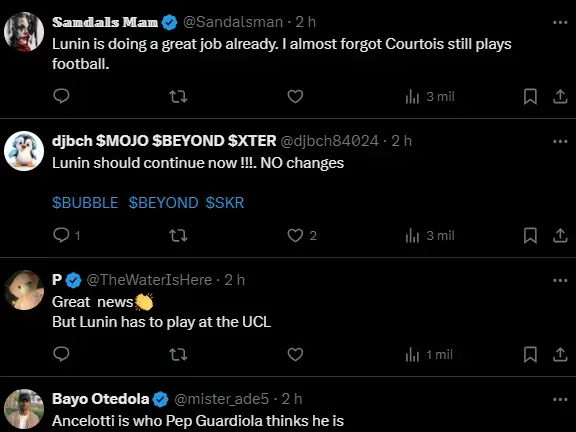“Courtois está bem e vai jogar. É uma boa notícia, tal como quando foi o regresso de Militão. Ele pode contribuir, tem muito entusiasmo e estamos todos muito satisfeitos por ele poder regressar”, garante.