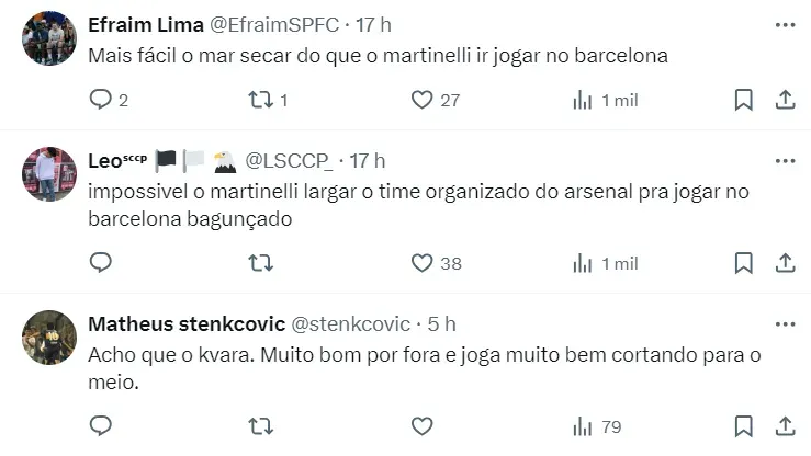 A situação de Kvara com o Napoli é a mesma de Martinelli com o Arsenal: contrato até 2027 e valor de mercado acima de 80 milhões de euros.