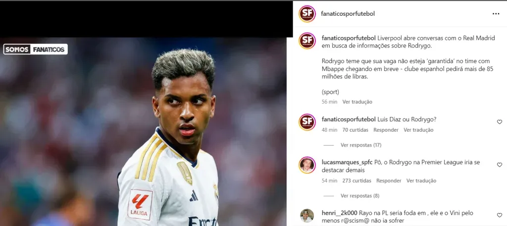 A informação do jornal Sport dá conta que os Reds já entraram em contato com o clube merengue pelo jogador brasileiro, que teme perder sua vaga no time titular do Real Madrid com a chegada de Mbappé.