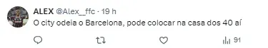 A primeira seria do Arsenal. O clube inglês almeja a contratação do jogador e entende que o City não o liberará por menos de 40 milhões de euros (R$ 217,74 milhões). A outra oferta é da Arábia Saudita, por valores que se ajustam à avaliação do jogador, segundo a matéria da ESPN.