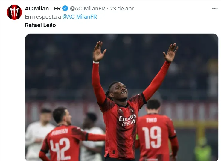Atualmente, Rafael Leão defende o Milan, é o grande jogador do gigante de Milão e teve seu contrato renovado recentemente até o ano de 2028, assinatura que o fez um jogador mais bem pago.