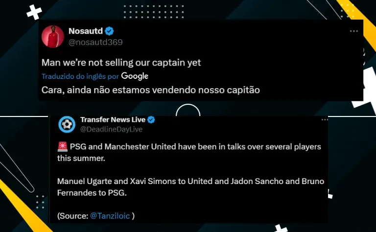 Neste negócio com o PSG, Bruno Fernandes iria para Paris, enquanto Xavi Simons, para a Inglaterra. Segundo Loic Tanzi, do jornal L’equipe, os clubes estiveram em conversas recentemente. Demais atletas, como Ugarte e Sancho, também estão envolvidos. A troca seria limpa, ou seja, atleta por atleta.