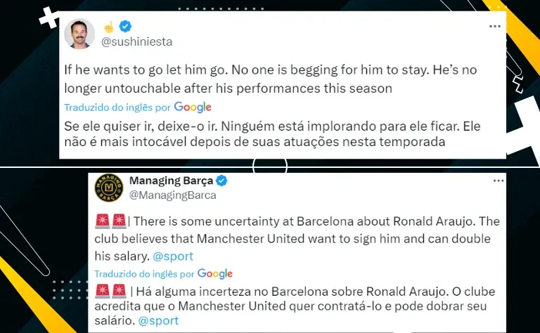 Para fazer diferente e dar alegria ao seu torcedor, o Manchester United está altamente interessado no zagueiro Ronald Araújo, de 25 anos de idade, que se recusa a renovar com o Barça e pode sair em breve.
