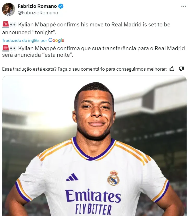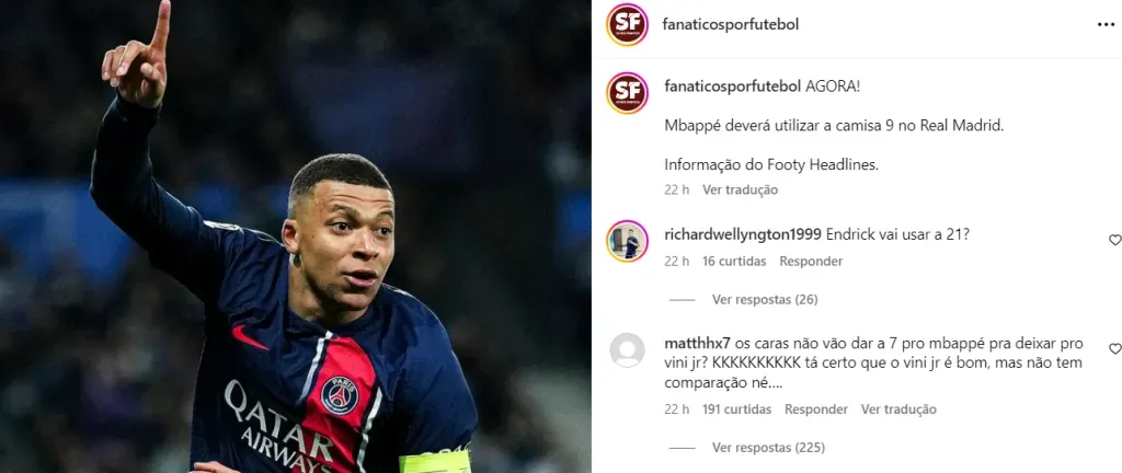 No entanto, não será possível, neste momento, atender o pedido do jogador, visto que Mbappé aceitou jogar como atacante fixo no time de Ancelotti e, por isso, vai utilizar a camisa 9. Na imprensa, outras fontes confirmam que o francês vai herdar a camisa de Benzema.