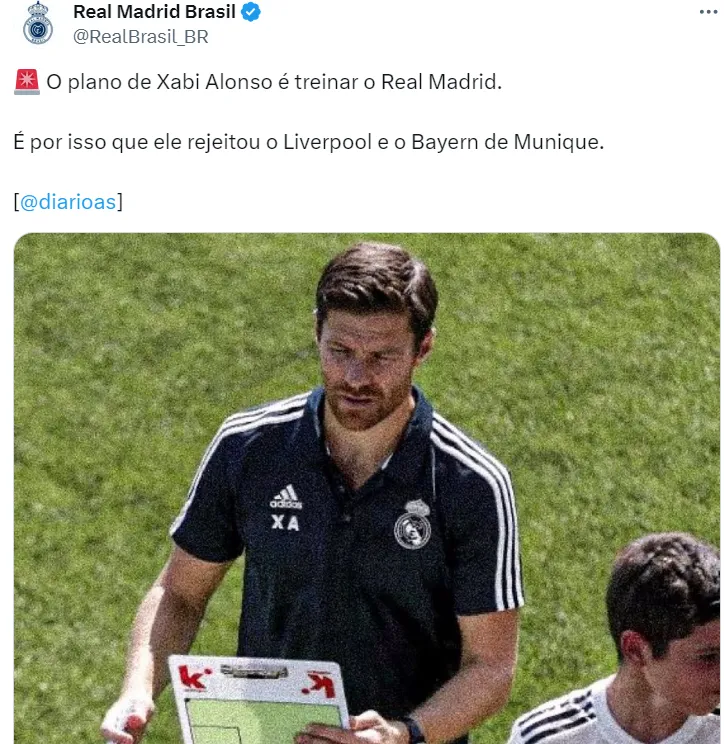 De acordo com informações do Diário AS, da Espanha, Xabi Alonso decidiu ficar no Bayer para assumir o Real Madrid no futuro. A fonta conta que essa decisão teve peso nas recusas por Liverpool e Bayern de Munique.
