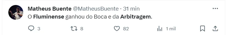 O jogo também foi bastante disputado e, é claro, envolveu algumas confusões. Isso começou com supostos erros da arbitragem, que foram amplamente mencionados pelos torcedores do Fluminense nas redes sociais.