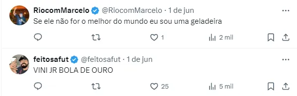 Vinicius Júnior, porém, nunca escondeu a felicidade de estar no Real Madrid. Ele que, na última temporada, somou 39 jogos disputados, marcando 24 gols e fornecendo nove assistências.