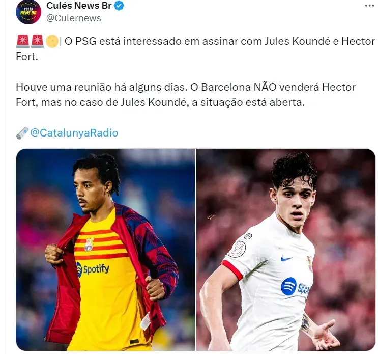 O PSG se sentou com o Barcelona para tentar se aproximar do jovem, mas um acordo não vai acontecer. O clube espanhol entende que Fort é uma grande promessa do futuro e, por isso, descartou qualquer possibilidade de negócio.