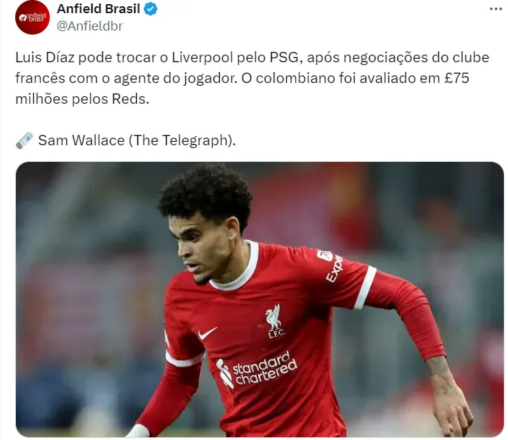 A negociação entre PSG e os representantes de Díaz teria aproximado ainda mais o atacante de trocar a Inglaterra pela França, uma vez que o interesse do clube local pelo camisa 7 é antigo. O Liverpool, ciente, não deseja perdê-lo, mas sabe que nada poderá fazer diante da possível vontade de jogador.