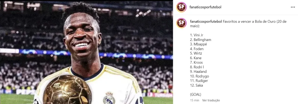 Vini Jr., do Real Madrid, destoa como favorito a Bola de Ouro