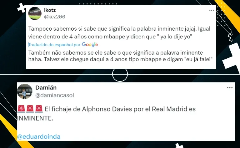 “Davies é uma contratação iminente para o Real Madrid. Há dias que ele procura por uma casa em Madri”, disse o periodista esportivo. Ainda de acordo com ele, o clube Branco já iniciou o processo da venda de Fran Garcia.