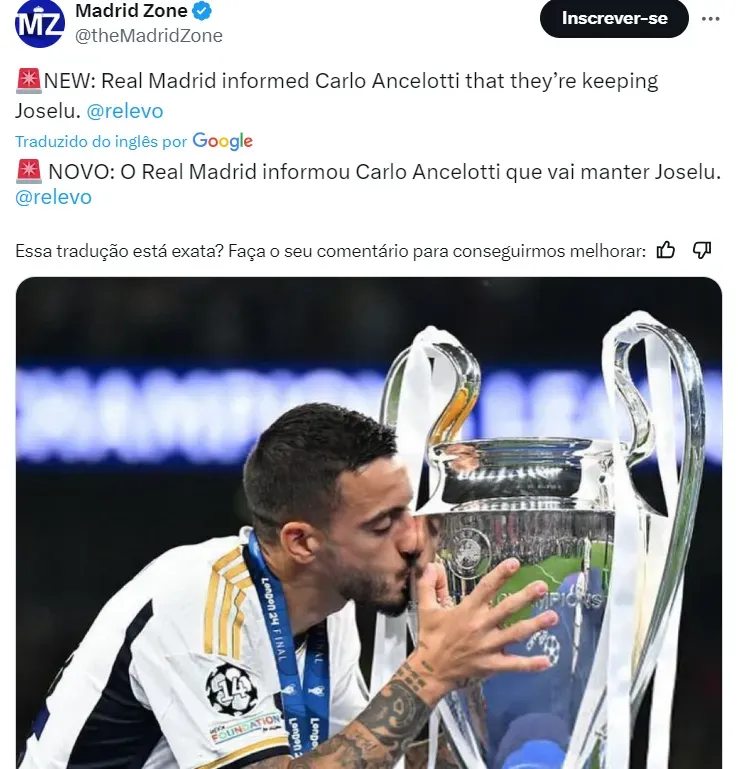 Dentro do clube merengue, o trabalho segue, e Carlo Ancelotti foi informado de que a permanência do atacante Joselu está confirmada para a temporada 2024-25. A informação é do jornal Relevo, da Espanha.