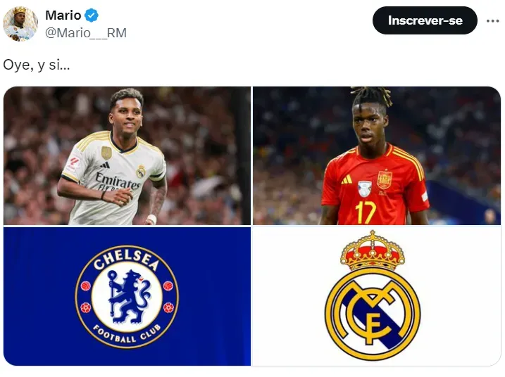 O grande perfil voltado Real Madrid aproveita sua crítica para sugerir uma ida de Rodrygo ao Chelsea, como uma oferta dos Blues desistirem de Nico Williams, deixando o caminho livre para Florentino.